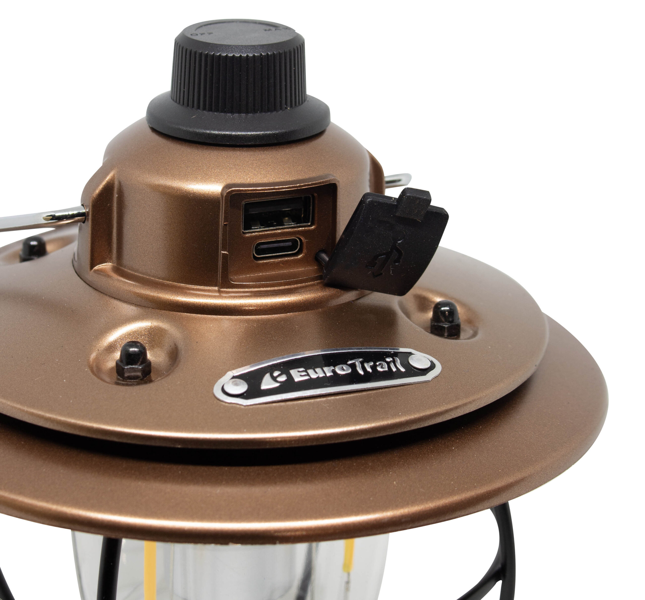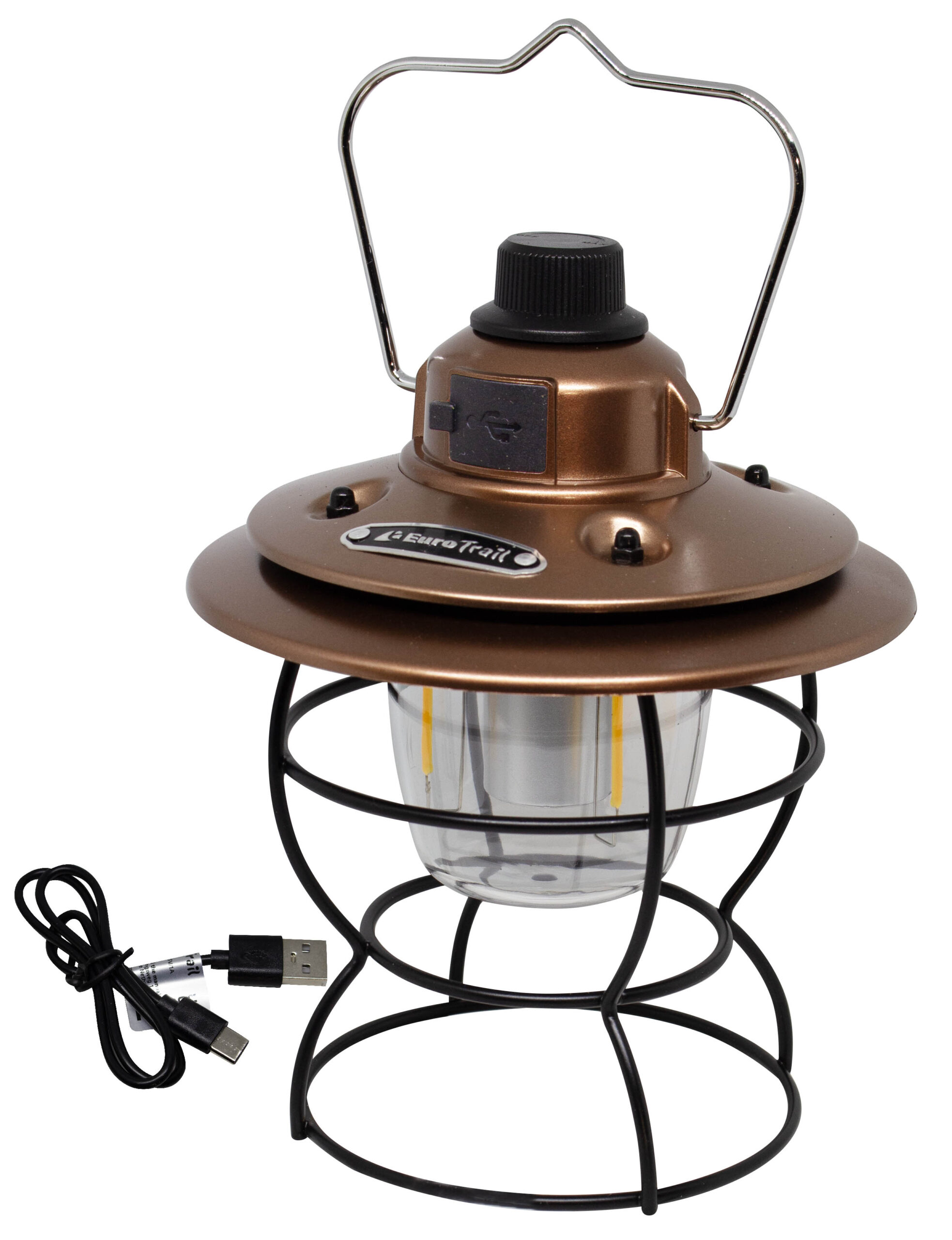 This sturdy camping lamp with a robust iron frame and original hood is a real eye-catcher. The classic look is combined with modern convenience: rechargeable via USB and easy to operate with the rotary knob on top. This allows you to switch the lamp on and off, choose between warm or white light and dim the light continuously. An atmospheric and practical lamp for any outdoor location, with character. Also a power bank function.