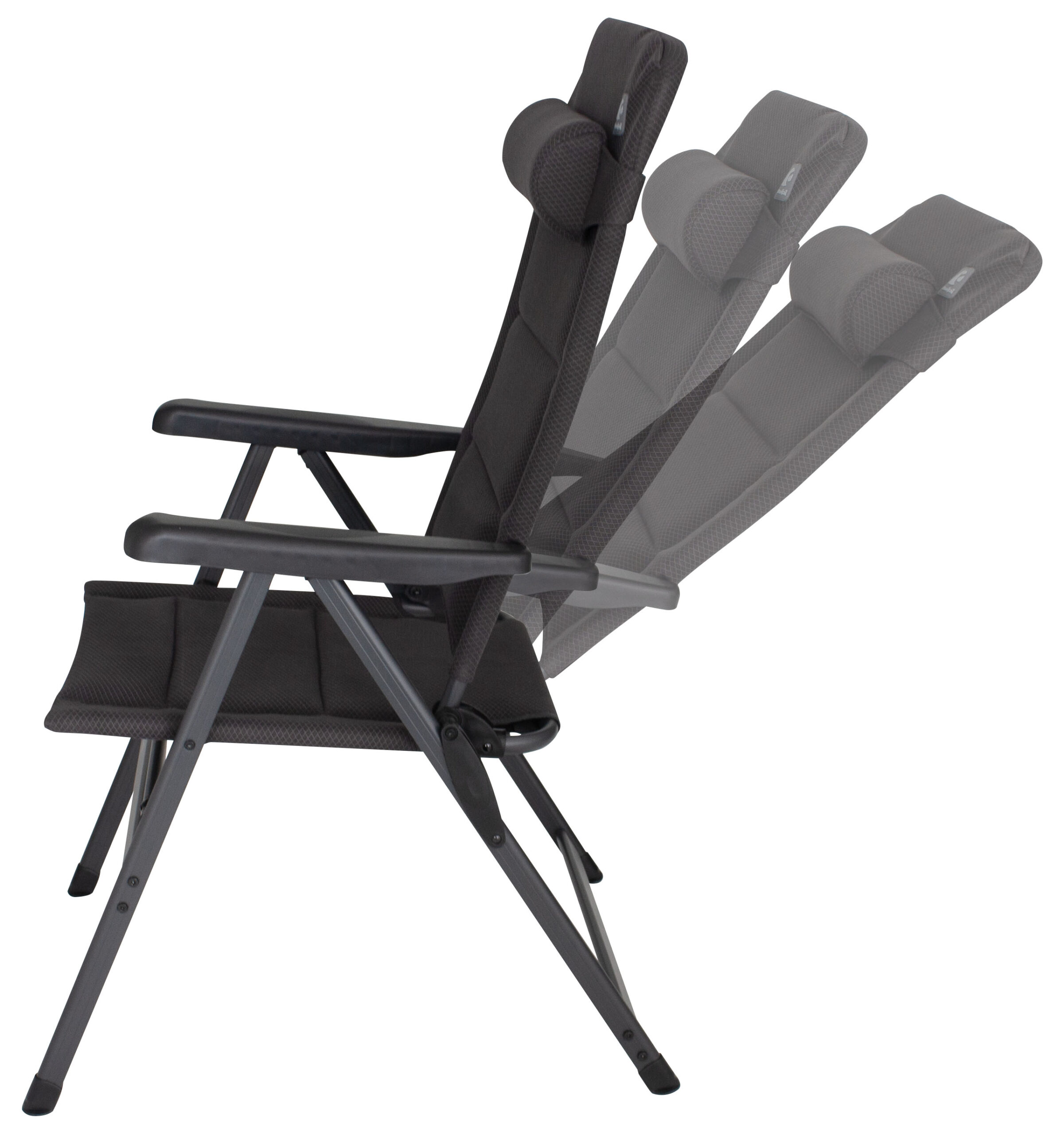 El respaldo ajustable en 6 posiciones le permite encontrar siempre la postura ideal. Ya sea para sentarse erguido mientras cena o relajarse con un libro, esta silla de camping se adapta sin esfuerzo. El reposacabezas ajustable con cojín proporciona un soporte adicional para el cuello y la cabeza, y se puede ajustar a la altura deseada, ¡incluso como soporte lumbar!