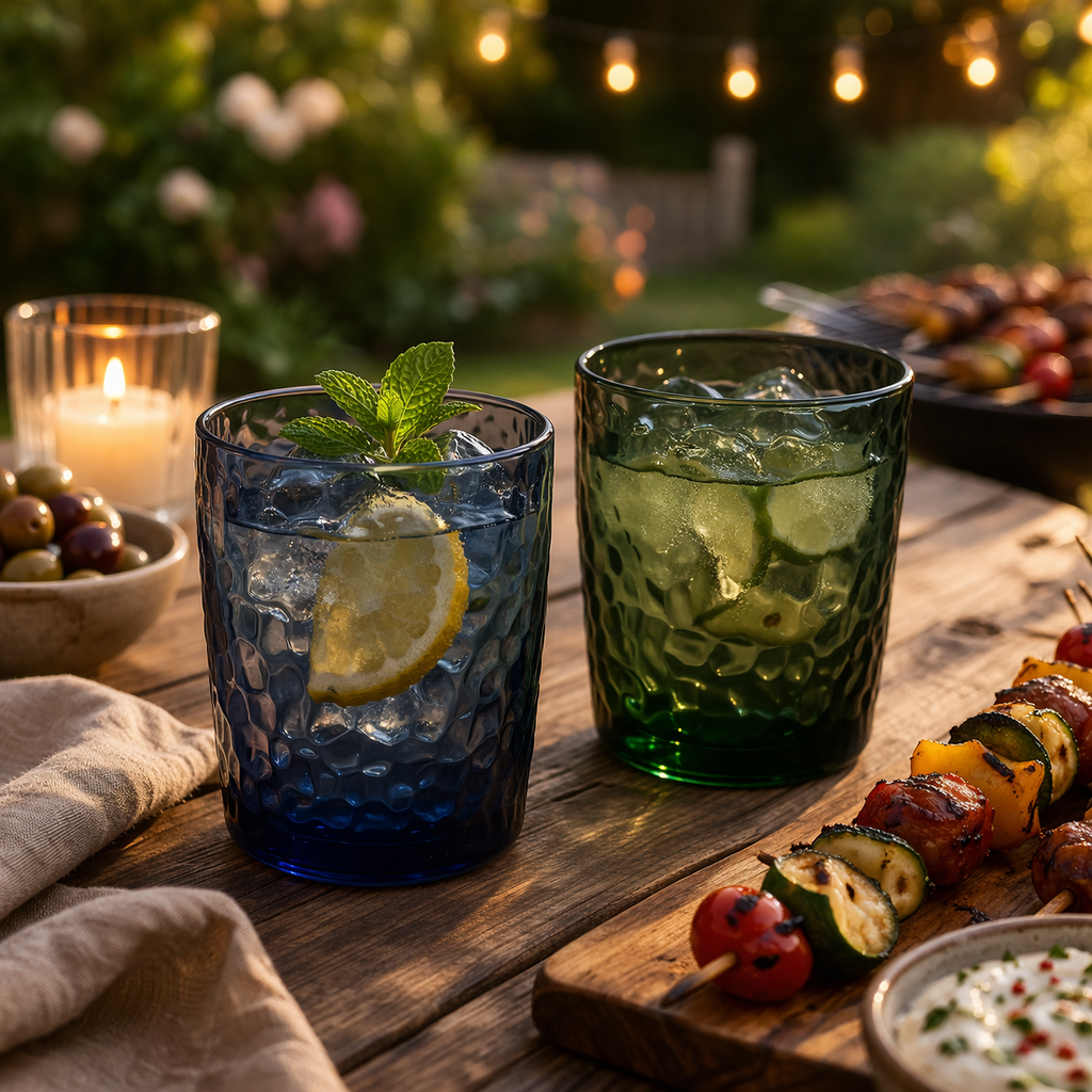 Le verre est fabriqué en plastique MS de haute qualité : 100 % sans BPA, léger et pratiquement incassable. Idéal pour le camping, le jardin, le bateau ou les pique-niques, sans compromis sur l’esthétique.